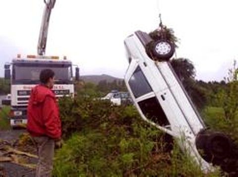 REDACCIÓN A ESTRADA Un joven resultó ayer ileso tras haber sufrido un espectacular accidente que le hizo caer por un terraplén de unos treinta metros. El joven, que conducía un Ford Orión de color blanco, derrapó en una curva de la carretera N-640 a la altura de A Rocha. El coche se arrastró durante 15 metros por el arcén y acabó cayendo por un precipicio de unos 30 metros de altura. En su caída se llevó varios árboles por delante. Sin embargo, el joven, que logró salir del coche por su propio pie y se encargó personalmente de avisar a la grúa, no sufrió ni un rasguño. Eso sí, el rescate del vehículo fue una operación complicada. Perros de rescate Por su parte, el grupo de perros de rescate de la agrupación de Protección Civil de A Estrada se desplazará hoy a Vilalba para continuar colaborando en la búsqueda de A.G.R., de 74 años de edad, desaparecido de su domicilio el pasado miércoles, 9 de mayo, cuando salió a pasear. El grupo efectuó ya batidas en la zona esta semana, sin obtener resultados satisfactorios por el momento.