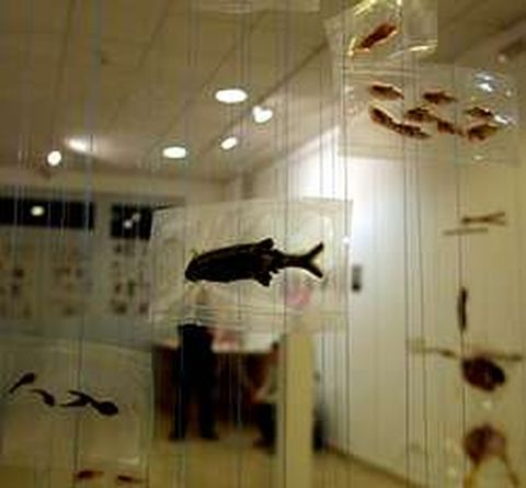 Reportaje | Una exposición muestra esculturas con animales envasados Un móvil con pájaros, una pecera de colores, una jaula con una agapurni... A simple vista, objetos de adorno. Pero en todos ellos se ha detenido el tiempo.