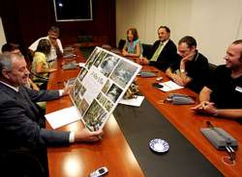 El conselleiro se reunió ayer con vecinos, los alcaldes de Cruces y Touro, y ecologistas Los afectados se muestran esperanzados de que se frenen los proyectos en trámite