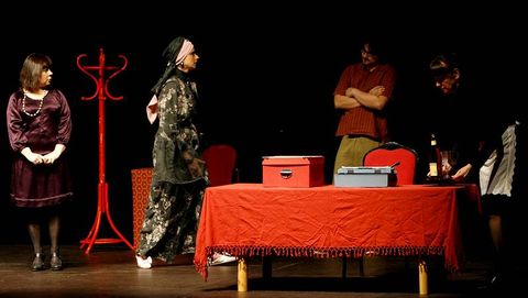1El grupo de teatro Disfunción continua, de reciente creación, debutó con éxito ayer en A Estrada, en un Principal que se acercó al lleno, con la representación de la obra Cóncavo-convexo, basada en un texto de José Prieto y con dirección de Jouse García. La formación había estrenado la función en Antas de Ulla el pasado mes de marzo, y también actuó en Vedra. Unas intervenciones que dejaron paso a su presentación en A Estrada. El grupo estradense está integrado por María Gaiteiro, Mar Blanco, María Porto, Belén Blanco, Clara Iglesias, Tino Regueira y Reices de Couso.