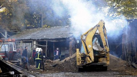 Dos vehículos y tres bomberos acudieron en un primer momento a sofocar las llamas, que afectaron a una superficie de unos 45 metros cuadrados. Emplearon 2.500 litros de agua. El fuego afectó a una zona donde había acumulados restos de madera y serrín, encargándose maquinaria del propietario de ir retirando material para facilitar las labores de extinción por los bomberos, que mantuvieron un retén durante varias horas para evitar que los rescoldos reavivasen las llamas. También participó un miembro del GES.