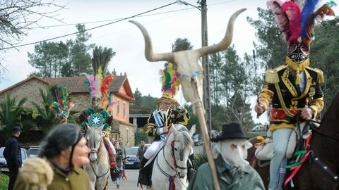 Por la tarde, el campo da festa, fue tomado por el color y el empaque de Xenerais y correos a caballos. Reinó el brillo de los uniformes y los penachos de plumas. Este año se recuperó la Parranda dos Cegos, una tradición a golpe de tambor que tuvo como protagonista la Vesta Velutina.