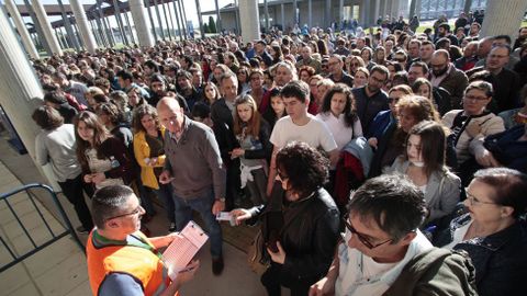 La Feira Internacional de Galicia, en Silleda, acogió ayer el primer examen de las oposiciones a 55 plazas de empleo público de la escala de veterinarios. De los 802 admitidos se presentaron el 76,3 %, es decir, 612 personas. Dos de las opositoras, en avanzado estado de embarazo, se examinaron en la delegación territorial de la Xunta en Ourense.