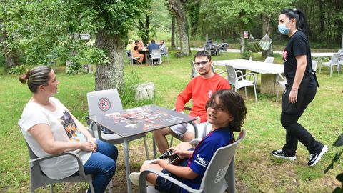 Es el caso del Mesón O Xarro de Aguións, en A Estrada, que en las dos últimas semanas ha visto ampliarse su clientela habitual. El negocio cuenta desde siempre con una zona de carballeira con algún columpio que hasta ahora se había usado exclusivamente como área de esparcimiento infantil. La terraza habitual, en el frente del local, era mucho más pequeña. Con la entrada en la fase 1 y la posibilidad de abrir al público solo con servicio en terraza, los propietarios decidieron ampliar la suya a la zona de la carballeira. «Abrir só coas mesas de diante non nos compensaba, así que decidimos colocar mesas na zona da carballeira e foi un éxito. Veu moita xente nova que non tiña vido nunca. Moita xente do pobo», comenta la responsable, Rocío Bravo. El negocio cuenta ahora con 16 meses al aire libre que se quedan cortas para atender la demanda. «Sobre todo á tarde-noite estamos a tope. A verdade é que se está moi ben. É un sitio tranquilo, ao fresco, con brisa. É tal cual á beira do mar», subraya Rocío.