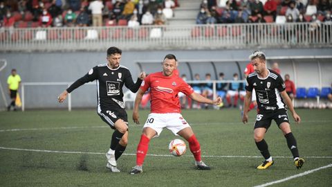 A los 30 segundos Dieguito casi abre el marcador tras un error en salida de balón del Compos, toda una declaración de intenciones de los rojillos que, a través de una intensa presión, pretendían desarbolar el plan de juego de los de Rodri Veiga. No obstante, los santiagueses también contestaron y a los dos minutos, Primo envió el balón al larguero tras otro despiste de la zaga local. Antes, Coke ya tuvo que lucirse en un mano a mano en un capítulo de dos minutos de locura.