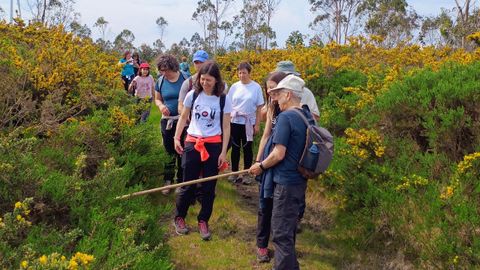 La asociación A Fervenza de Ouzande celebró este domingo una Ruta das Letras en la que participaron una veintena de personas de todas las edades que cumplieron con el lema de la caminata: «Andamos, cantamos e falamos». Recorrieron 12 kilómetros, aprendieron a distinguir el toxo cachudo del toxo manso, recitaron y cantaron cantigas populares y se fueron a casa con un libro en gallego de regalo.