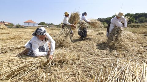 A Casa do Patrón acolleu dunha nova edición da representación da sega tradicional do centeo. Unha cita inscrita nas actividades relativas á Festa da Malla que terá lugar o sábado 23. Os participantes, vestidos con roupaxes tradicionais, fixeron atados do cereal e deixaron preparado o material para o momento da malla. foto adrián freiría