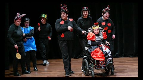 El Salón Teatro de Lalín acogía una nueva edición del Festival de Nadal de la asociación Aspadeza. Sobre el escenario los usuarios demostraron sus habilidades con el teatro o la canción y el baile ante numeroso público. foto miguel souto