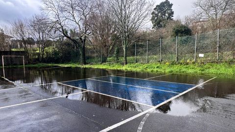 En A Estrada, el agua acumulada impide el uso de parte del patio de un colegio