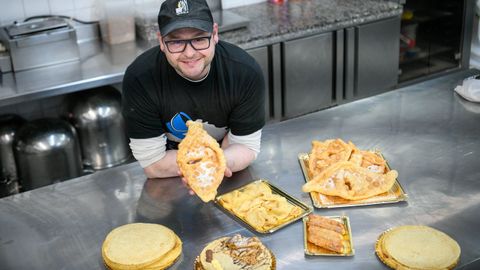 «A orella tira moito. Eu diría que é a raíña do Entroido», explica Moisés Cervela Deber (A Estrada, 1982), que lleva más de veinte años al frente de la sección de pastelería del negocio familiar. Se fabrican 390 unidades diarias y otras 400 aparte cuando van de postre en los menús del programa Xantar na Casa.