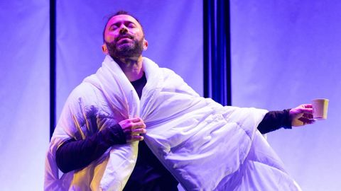 —Aí estou pola obra «Reconversión», de Ibuprofeno Teatro. É un texto que aborda a reconversión naval dos anos 80 en Vigo. É unha obra coral na que participamos oito actores e músicos, e eu protagonizo o papel do pai do autor da peza, que é Santiago Cortegoso. Fago de nexo desa historia con moitos actores ao redor.