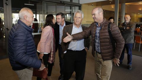 Antes de entrar en la reunión, varios regidores venían con una agenda de peticiones. José Luis Poceiro, necesita colaboración supramunicipal para dotar de red secundaria a Vilaboa. El buenense Félix Juncal plantea un nuevo sistema de depuración y el poiense Luciano Sobral ayuda para abastecer los núcleos más elevados del monte Castrove.