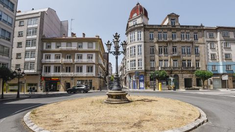 A la espera de la remodelación de la plaza, la rotonda de la Praza de Galicia ofrece una imagen desoladora este verano
