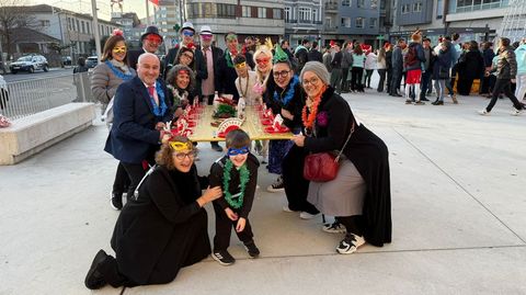 El otro gran vencedor de la jornada fue la mesa móvil de Fin de año, que obtuvo el aplauso popular. Este grupo de amigos —que el año pasado obtuvo premio con una comparsa de langostinos y en el 2023 lo hizo con un trineo tirado por renos— escenificó esta vez una cena de despedida del año en la que no faltaba de nada: ni la mesa navideña, ni la abuelita que se queda dormida, ni la invitada destroza-villancicos.