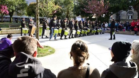 En A Estrada se vibró durante toda la jornada sabatina al ritmo de la batucada. Escuelas y grupos musicales de distintos puntos de Galicia acudieron a este encuentro, que comenzó ya por la mañana en la Praza da Constitución, donde celebró un taller. Por la tarde distintas formaciones recorrieron las calles del caco urbano, entre ellas Tambukda, Vilatuke, Escola de Latexo, Percusar, Perqtores, Boa Vibra y Latexo Percusión. Por la noche el colofón estaba previsto con una sesión a cargo de DJ Morongo en la Praza do Concello estradense. foto adrián freiría