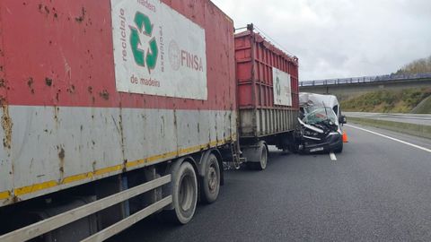 Una persona resultó ayer herida leve en un aparatoso accidente que se produjo unos minutos después de las 11.00 horas en la AP-53 a su paso por Dozón. En el suceso se vieron implicados tres vehículos, uno de ellos un camión, una furgoneta y un coche. Hasta el lugar se desplazaron efectivos de Emerxencias de Lalín.