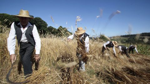 11 ago 2016 . Actualizado a las 05:00 h.Con el objetivo de difundir y conservar los valores de la cultura tradicional gallega, se reunían ayer un grupo de segadores en el Museo Casa do Patrón para proceder a la tarea anual de segar el centeno. La cuadrilla estaba compuesta por segadores propios de la zona y otros siete hombres de la parroquia de Queiroás da Igrexa (Allariz), quienes llevan 15 años poniendo en valor el ciclo del pan en su zona manteniendo las costumbres tradicionales. Se trata de la 17 edición anual consecutiva de la siega del centeno que se utilizará en la Malla Tradicional de Lalín, el próximo día 20 en Codeseda, Doade. Manolo Blanco Villar de A Casa do Patrón relataba que «dáse a casualidade, ou non, de que os meus pais, avós, e bisavós, segaron durante anos esta leira en calidade de caseiros, compartindo co seu amo a metade da colleita» por lo que este trabajo nace por la memoria de todos ellos.
