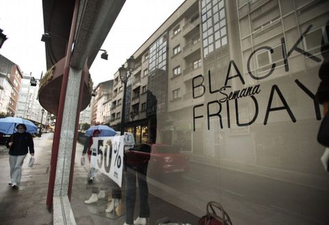 Ayer en Lalín, a pocos días para el Vernes Negro, los escaparates que anuncian esa fecha se cuentan prácticamente con los dedos de una mano. Son los que extienden los descuentos a lo largo de toda la semana, o alguno incluso que empezó ya la pasada con rebajas en algunos productos. Los descuentos van del 20 al 50 % en distintos productos.