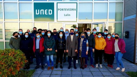En el salón de actos de la UNED en Lalín se inauguraba ayer el taller de empleo dual Sendas. La iniciativa ofrece formación durante nueve meses a una veintena de personas desempleadas en las áreas de carpintería y mueble y de actividades auxiliares y de conservación de montes. El delegado territorial de la Xunta, Luis López, junto a la teniente de alcalde, Paz Pérez, participaron en el arranque de este taller dual que se suma a otro ya en marcha, Lalinnnova. Entre ambos suma, dijo López, 36 personas que están mejorando su empleabilidad. Cifró en 417 los participantes en Deza y Tabeirós actividades formativas, con cuatro talleres y 23 cursos AFD, que suponen 2,6 millones de euros de inversión.