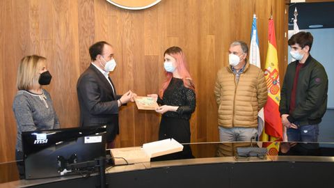 El alcalde de Lalín, José Crespo, recibió ayer a Sofía Haselgruber de Francisco a la que el Concello quiso entregar un obsequio por su esfuerzo y por el éxito conseguido al obtener el número 1 de España en el MIR. El regidor estuvo acompañado de la teniente alcalde, Paz Pérez Asorey, el edil Avelino Souto y Manuel Gómez, del Patroado, ya que Sofía estudió también en el Conservatorio consiguiendo éxitos también al piano. Crespo se ofreció a presentar a Sofía Haselgruber a Marisol Soengas que goza de un gran prestigio mundial en la investigación del melanoma. El alcalde se comprometió a ponerlas en contacto y pedirle a Soengas, que es comendadora del cocido, la posibilidad de que esta lalinense pueda llegar a conocer su laboratorio. Una propuesta que fue muy bien recibida por Sofía.