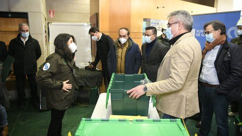 La visita de ayer del conselleiro, que estuvo acompañado por el director xeral de Defensa do Monte, Manuel Rodríguez, y el alcalde de Lalín, José Crespo, fue para entregar en Lalín ropa para los agentes ambientales y técnicos del distrito forestal XVI Deza-Tabeirós. Los 18 agentes y técnicos de esta demarcación recibieron cada uno de ellos, botas de invierno, anoraks, chaquetas (tanto cortavientos como de verano), así como pantalones de verano y de invierno, jerséis y polos de manga larga y manga corta.