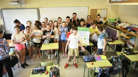 Alumnos de la escuela infantil de Donramiro y del colegio Manuel Rivero de Lalín recibieron ayer sus premios Aulas libres de plástico. En ambos casos por poner en marcha proyectos que permitieron reducir el uso de este material en las aulas. En concreto, en Donramiro se sustituyó el plástico por la madera, mientras que en el Rivero consiguieron el reconocimiento por presentar el proyecto más innovador. Hoy será la entrega de galardón al CEIP Xesús Golmar en esta iniciativa de la concejalía de Medio Ambiente. foto miguel souto/cedida
