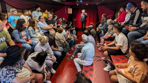 El Mago Antón recaló ayer en Lalín con su espectáculo en torno al Camino de Santiago. El autobús móvil donde presentó O Romance do Conde de Cagliostro se llenó en los distintos pases programados en horario de mañana y tarde. Incluso hubo colas y personas que tuvieron que esperar a otro pase para poder asistir.