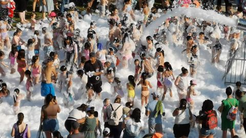 Las altas temperaturas animaron la participación en los hinchables, muchos de ellos acuáticos, de la segunda jornada del Xoga Lalín que ayer se celebró en la Praza Galicia y que contó con una nutrida participación. La tarde acabó con una fiesta de la espuma.