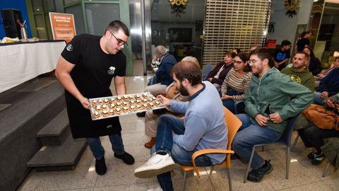 El primero, explica, sería una falsa croqueta de jabalí para comer con cuchara y falsa porque no es frita ni tiene forma de croqueta y un bocado dulce que consistió en «unha bica de castañas con requesón e mermelada de setas». En el centro, Alberto González montó las tapas, explicó a los asistentes la forma de elaboración, aclarando las dudas que planteen. La actividad acabó con una degustación. González recordaba los ratos pasados de niño y adolescente en el centro comercial lalinense que era punto de encuentro. La iniciativa se llevó a cabo de forma gratuita.