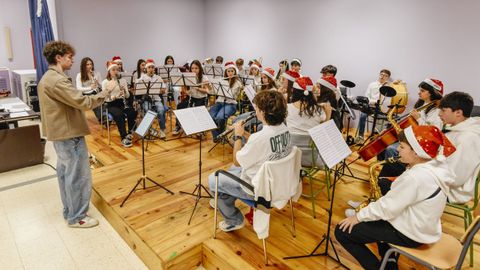 La idea partió de la vicedirectora, Sylvia Cea Vázquez, hace quince días. Fue corriendo la voz en busca de músicos y en poco tiempo y tras «ensaiar so unha semana», ayer realizaron su presentación en sociedad. La dirección la asumió Antón Lois, un alumno de segundo de BAC. La formación ya participó ayer en el festival de Navidad del centro tocando cuatro piezas porque no hubo tiempo para mucho más.