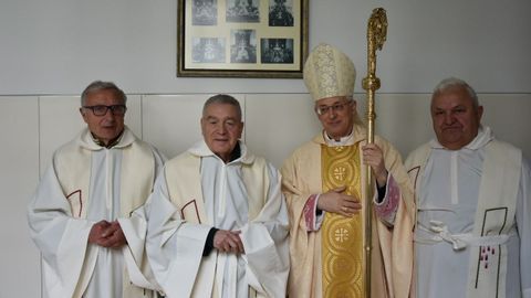 Los sacerdotes dezanos Emilio Alvito García Fente, de Rodeiro, Manuel Cibeira Lorenzo de Castro Dozón y José Antonio García Otero de Muimenta, fueron homenajeados por el Obispado en el seminario de Lugo donde se formaron con motivo de sus 50 años como sacerdotes. Medio siglo de servicio a los demás y a la comunidad que estos tres compañeros de curso celebraron con otros cinco curas de la diócesis que también cumplen sus bodas de oro y con un sacerdote colombiano de Palas de Rei que suma 25 años como cura. Al menos en el caso de los tres dezanos, la celebración fue por adelantado porque su ordenación tuvo lugar el 16 de junio de 1969.