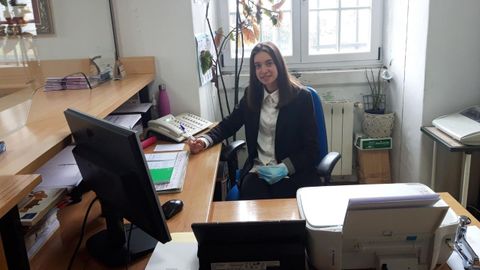 Asegura que «trátanme moi ben» y la ventaja es que al ser de Rodeiro «atópome a diario a bastantes coñecidos que pasan por aquí» y que se la encuentran en la recepción. Su labor incluye atender el teléfono, hacer fotocopias e «ir facendo as tarefas que vou podendo facer».