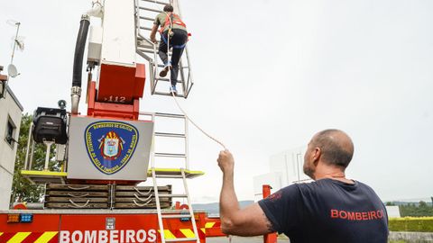 Los seis aspirantes que optan a alguna de las tres plazas de bombero-conductor ofertadas por el consorcio del parque intercomarcal de Deza y Tabeirós-Terra de Montes ubicado en Silleda, se enfrentaron ayer al último examen. Tuvieron que demostrar su valía profesional con una serie de pruebas de oficio que incluían desde subir por una escalera destinada a la realización de rescates y otros servicios en altura, al uso de diversa maquinaria de excarcelación y de corte de chapa, entre otras. foto adrián Freiría