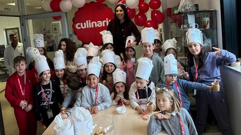 La empresa Culinaria celebró el viernes en sus instalaciones de Silleda una actividad navideña en la que fueron protagonistas los hijos de sus empleados. Una cita en la que conocieron el trabajo que realizan sus padres y que se completó con un recorrido por la factoría, actividades creativas y un taller de galletas.