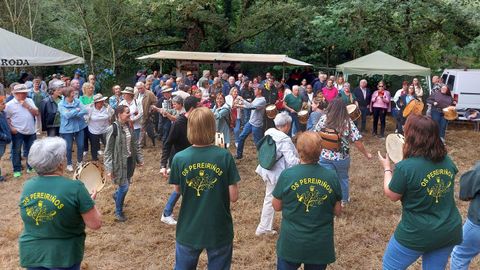 La lluvia de la tarde-noche del sábado hicieron temer por la celebración ayer de la undécima Romaría da Fervenza, en la parroquia de Escuadro (Silleda). Una celebración que entremezcla música tradicional, gastronomía y naturaleza donde al final apenas cayeron unas gotas sobre las 13.30 horas que obligó a un pequeño parón en las actuaciones, pero no afectó al programa de actos diseñado por el grupo local O Son da Fervenza.