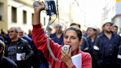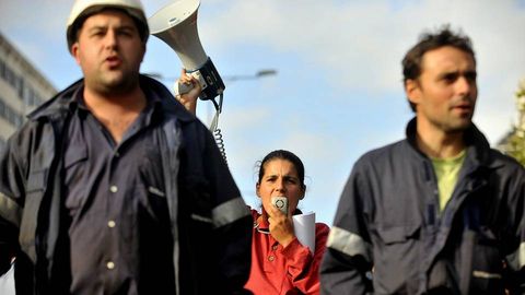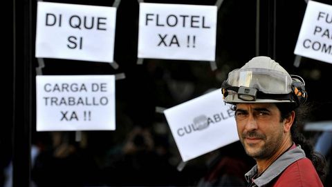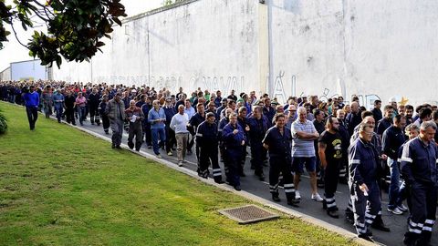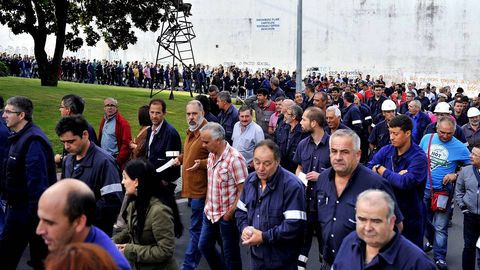 Poco antes de comparecer ante los medios y de encabezar la protesta, Blanco respondió a las preguntas de la plantilla sobre la negociación del convenio que están llevando a cabo con la empresa en Madrid. «A de onte [por la tarde del miércoles] foi unha reunión dura e tensa que comezou ás cinco da tarde e rematou en torno ás cinco da mañá; só podo dicir que non houbo avances, incluso só retrocesos», destacó el representante sindical sobre la negativa de Navantia a comprometerse con medidas para mantener el empleo. Este desencuentro fue el centro de muchas de las conversaciones que mantuvieron los participantes en una de las marchas más tranquilas, casi triste, de los últimos meses.