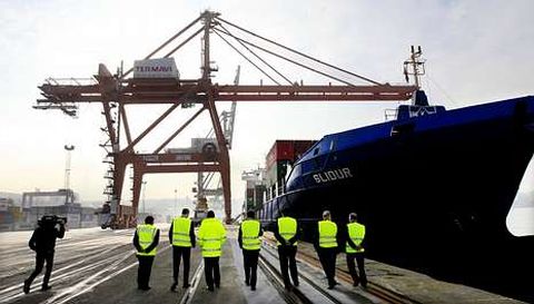 Feijoo aprovechó la visita para ver en funcionamiento la nueva grúa superpostpanamax. En este sentido, destacó que las posibilidades que tiene el puerto de Vigo de dinamizar la economía gallega van más allá del sector pesquero, fruto de sus condiciones naturales y de su operatividad las 24 horas del día los 365 días del año. «É un centro loxístico de primeira magnitude», concluyó.