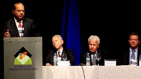 El hombre que está considerado el hombre más rico del mundo, tras desbancar recientemente a Bill Gates, ofreció una conferencia hoy en Asunción durante un encuentro de la Fundación Círculo de Montevideo, del que participaron ex presidentes como el uruguayo Julio María Sanguinetti, el colombiano Belisario Betancur, el brasileño Fernando Henrique Cardoso, el chileno Ricardo Lagos y el español Felipe González, entre otros.