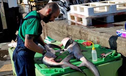 La flota europea está obligada a descargar los escualos enteros y manipularlos en tierra.