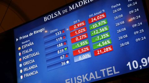 En el mercado de deuda, la prima de riesgo se ha colocado en 132,5 puntos básicos, con la rentabilidad del bono a diez años en el 2,065 %. Mientras, en el mercado de divisas, el euro se intercambiaba a 1,1229 billetes verdes.