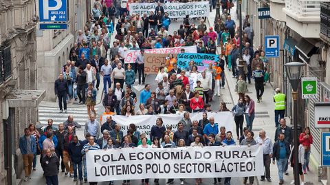 05 sep 2015 . Actualizado a las 10:02 h.La asamblea de ganaderos de Lugo, que reclama precios de la leche que cubran los costes de producción, consiguió su primer y único objetivo: una reunión con la conselleira de Medio Rural, Rosa Quintana, dejando al margen de esa negociación a las organizaciones sindicales, algo inédito. La conselleira confirmó a primera hora de la tarde que había aceptado el ofrecimiento de los productores concentrados en Lugo de verse con ellos para abordar el problema del sector, tras más de 24 horas con los tractores colapsando el centro de la capital lucense. La condición expresa que puso Rosa Quintana fue el compromiso de los ganaderos de desmovilizarse y retirar los tractores de la ciudad de las murallas y que el encuentro fuera con un grupo de representantes, no una comparecencia en asamblea.