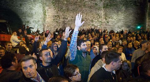 El líder del movimiento ganadero propuso a medianoche a la asamblea que concluyese la tractorada, pues la conselleira había cumplido su palabra y se había reunido con ellos. Se entabló entonces un vivo debate. Los ganaderos estaban divididos. Unos querían retirarse, y otros, mantener la protesta. Además se planteaban problemas como el de poder llevar a cabo la votación, pues no habían nada previsto al respecto.