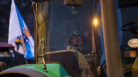Muchos ganaderos pasaron la primera noche en sus tractores o en las inmediaciones de donde los dejaron aparcados, vigilando para evitar posibles incidencias. Otros se retiraron a dormir a sus casas sobre las tres de la madrugada, para reincorporarse a la movilización después del ordeño de la mañana. Un tractorista que aguantó toda la noche en el asiento de su John Deere, con 40 años de uso, fue un ganadero ahora jubilado de Guntín, que a principios de año cumplirá los 80.