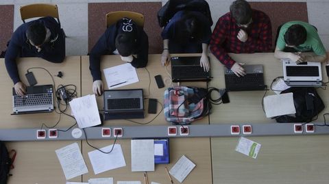 Los buscan. Nada más licenciarse -si no antes- los empleos los buscan a ellos. De hecho, a la facultad de A Coruña llegó hace un par de meses una empresa pidiendo 40 informáticos. Se fue con las manos vacías porque, simplemente, no había. El caso no fue aislado. Cada semana llegan una media de diez ofertas. De ahí, al tablón de anuncios digital o a las redes sociales. Se calcula, según explica Luis Hervella, decano de la facultad coruñesa, que el nivel de paro en esta carrera universitaria se encuentra en un -10 %. Sí, sí, escribámoslo con todas las letras para evitar errores: un menos diez por ciento.