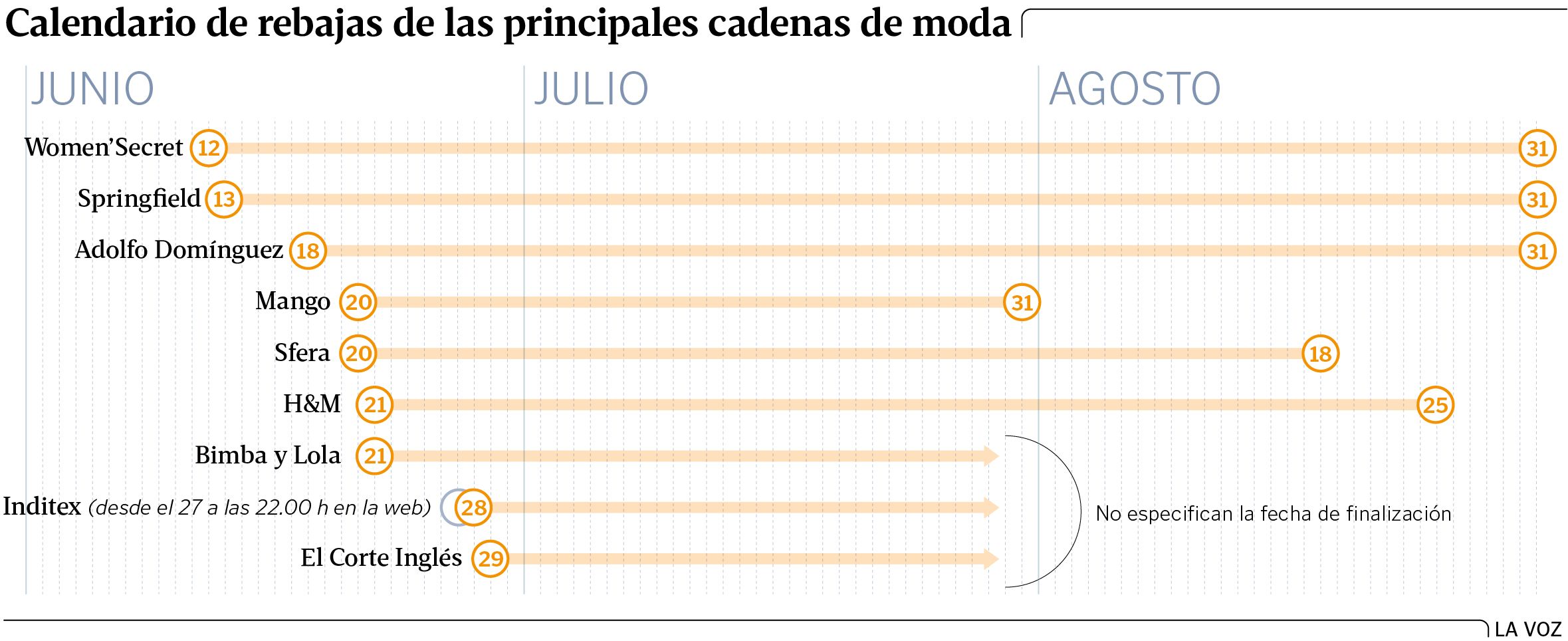 A pesar de todo, todavía queda algo de la esencia de las rebajas más tradicionales. Los saldos de verano se mantienen marcados en el almanaque. Eso sí, llegan a cuentagotas. Mientras firmas como Women’Secret o Mango llevan ya desde mediados de junio ofreciendo a sus clientes prendas más baratas, otras como Inditex se guardan la traca para finales de mes.