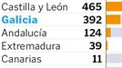 Pero, ¿cómo queda el mapa por comunidades? El de los molinos de viento, parecido, al menos el ránking de territorios con mayor potencia eólica instalada. Las cifras de REE confirman que Galicia conserva la medalla de bronce del podio nacional, pues es la tercera del país con más megavatios a merced del viento. Suma 3.803 y le pisa los talones a la segunda de la lista, Castilla-La Mancha, con 3.860; pero la líder nacional, Castilla y León, se escapa con 6.056.