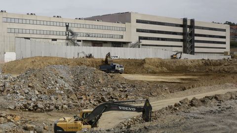 Grandes franjas de cimentaciones profundas anticipan la envergadura de las estructuras que se levantarán para soportar el nuevo inmueble, presupuestado en 240 millones de euros. De hecho, en un terreno anejo se apilan grandes montículos de tierra extraídos de la parcela que en los próximos dos años acogerá un nuevo edificio de cinco plantas (y dos más para aparcamiento) eficiente y sostenible en el que predominarán el color blanco y grandes ventanales horizontales que inundarán de luz natural los espacios interiores.