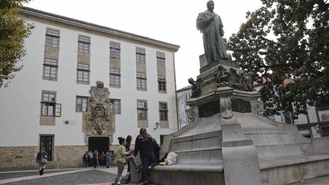 «En realidad sí que hay un poco de cachondeo. Otros estudiantes te dicen: “¿Filosofía? Eres un rallado”». Lo cuenta Xabier, un joven de Ferrol. Tiene 21 años y está en el tercer curso con asignaturas de segundo y primero. No se explaya mucho sobre la incomprensión que rodea la opción que eligió para ocupar estos años tan importantes de su vida. «Elegí esta carrera por un profesor del instituto. Pensé que sería bueno tener rigor y profundidad en las cosas». Tanto él como los otros estudiantes que se han unido al pequeño debate bajo la estatua de Montero Ríos se ratifican en la decisión que adoptaron en su día, muchas veces contra la opinión de sus padres, de elegir esta carrera: «Non se pode enfocar a educación só cara a unha saída laboral. Xa sabía que non vou ter moitas, pero iso non me pareceu un motivo para non matricularme», expone Paula, estudiante de segundo.