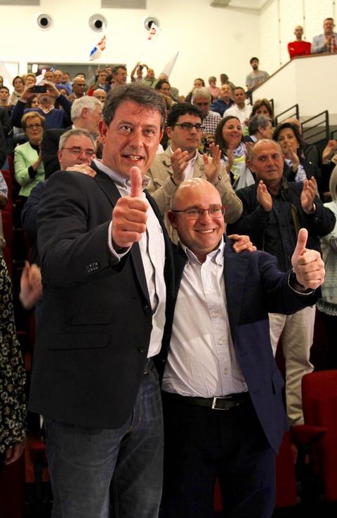 El secretario xeral de los progresistas se consagró al rescate de su aspirante en la capital gallega, Francisco Reyes, hundido en los sondeos. Allí se recreó en los «goles en propia meta» que los conservadores han metido a Santiago en el mandato 2011-2015. «É hora de superar o experimento fallido do PP», proclamó.
