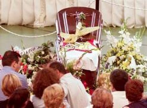 Miles de personas se agolparon ante los pabellones deportivos donde se celebraron los funerales «¡No os llevéis a mi hijo. No os lo llevéis!», imploraba entre lágrimas y sollozos una madre a los empleados de la funeraria en Ripollet. Esta población y Viladecans se volcaron ayer en el último adiós a las 28 víctimas del accidentee de tráfico de Soria. Cerca de 8.000 personas se congregaron frente a los escenarios de los funerales, celebrados en sendos polideportivos y que, por expreso deseo de los familiares, fueron de acceso restringido. La multitud siguió los oficios religiosos a través de megafonía.